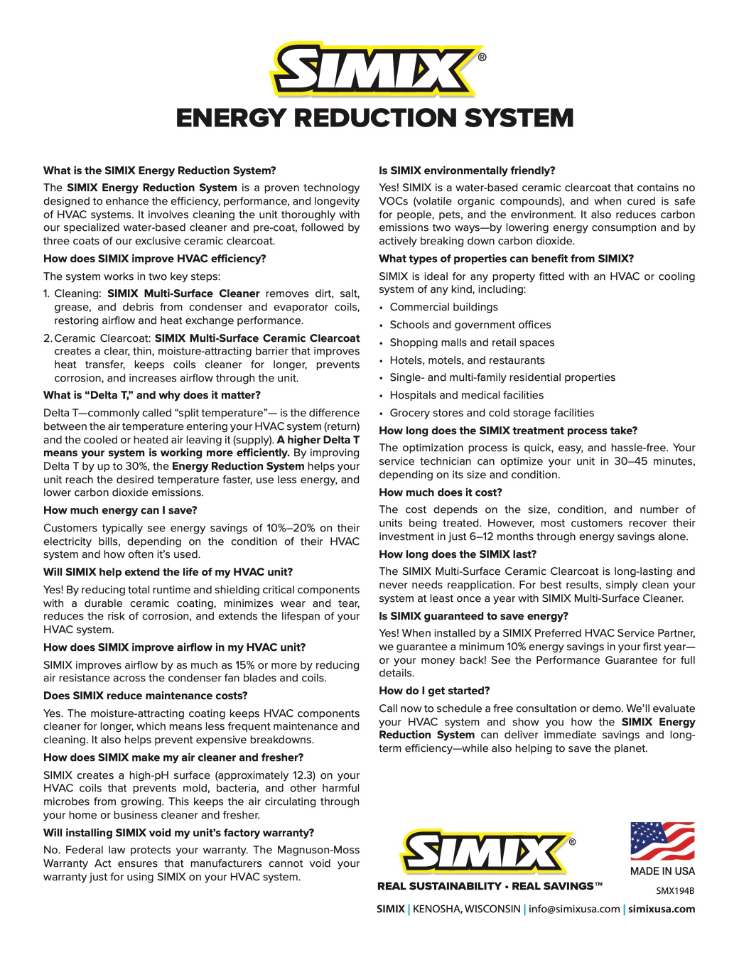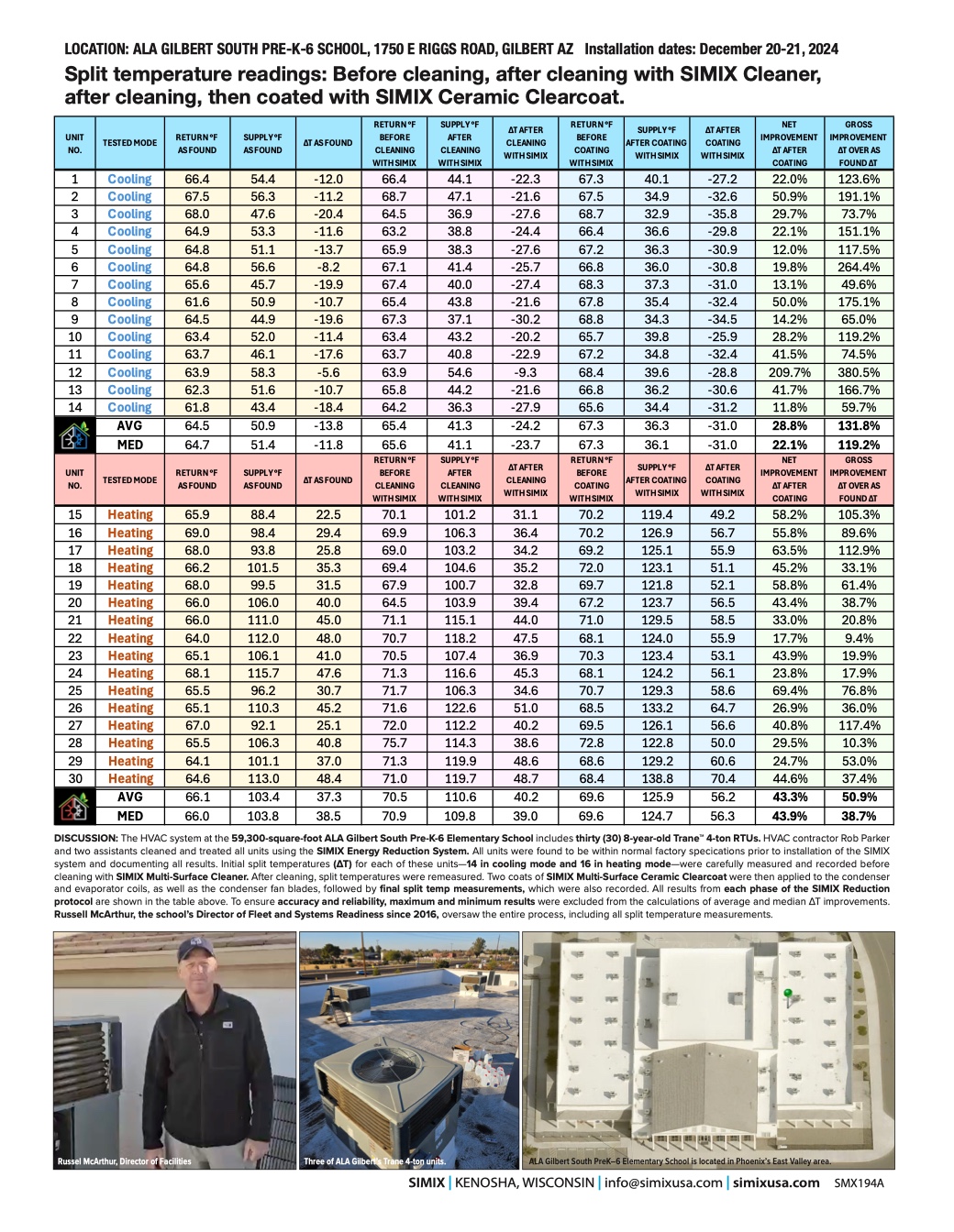 When SIMIX Cleaner and SIMIX Conductive Ceramic Coating are applied as a system, the HVAC unit: